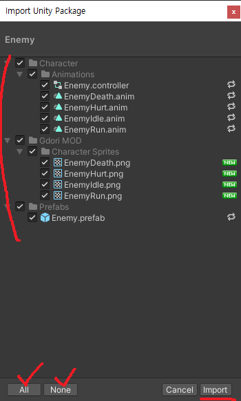 이후의 화면은 어셋 임포트랑 완전히 동일합니다.